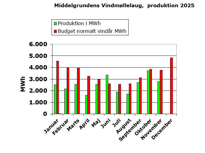 Produktionen fra Middelgrundens Vindmøller måned for måned.